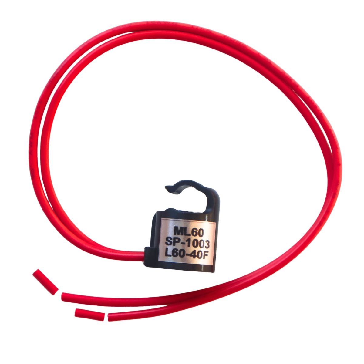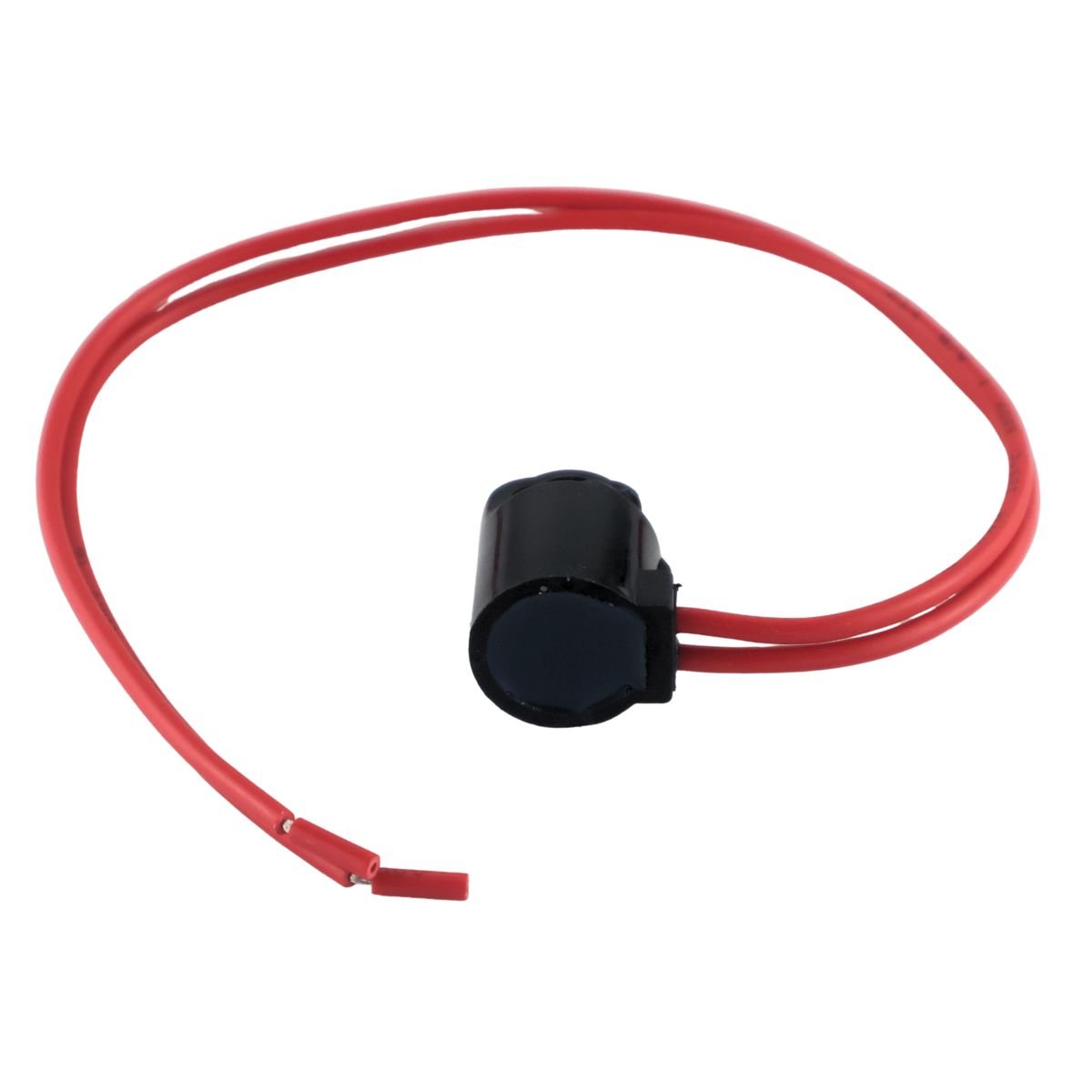 ✔️ 📏 Dimensiones y Diseño: Cuerpo compacto de 2.8 cms de largo, encapsulado en plástico negro de alta resistencia a la humedad. Cuenta con un gancho tipo clip (abrazadera) diseñado para anclarse firmemente a la tubería del evaporador.