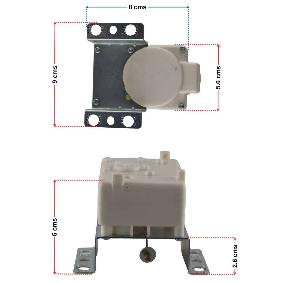 Diseñado con especificaciones originales. Cuenta con un soporte metálico robusto de 9 cms de largo por 8 cms de ancho. La altura total es de 6 cms y el diámetro del cuerpo del motor es de 5.6 cms. El recorrido del cable tensor es el indicado para liberar el freno correctamente (separación inferior de 2.6 cms). - 🔌 Compatibilidad Exacta:
